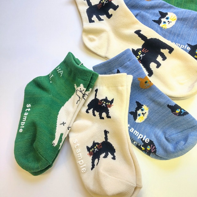 【きびす堂】ネコばっかり ショートソックス(3足セット)キッズサイズ&大人サイズ