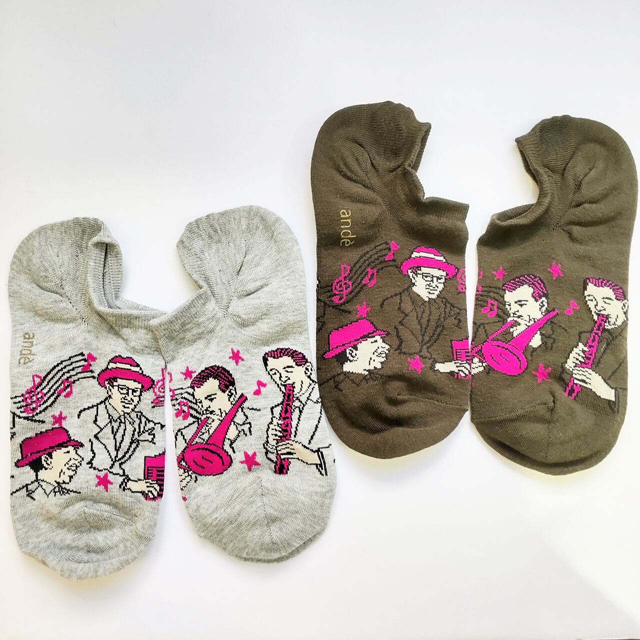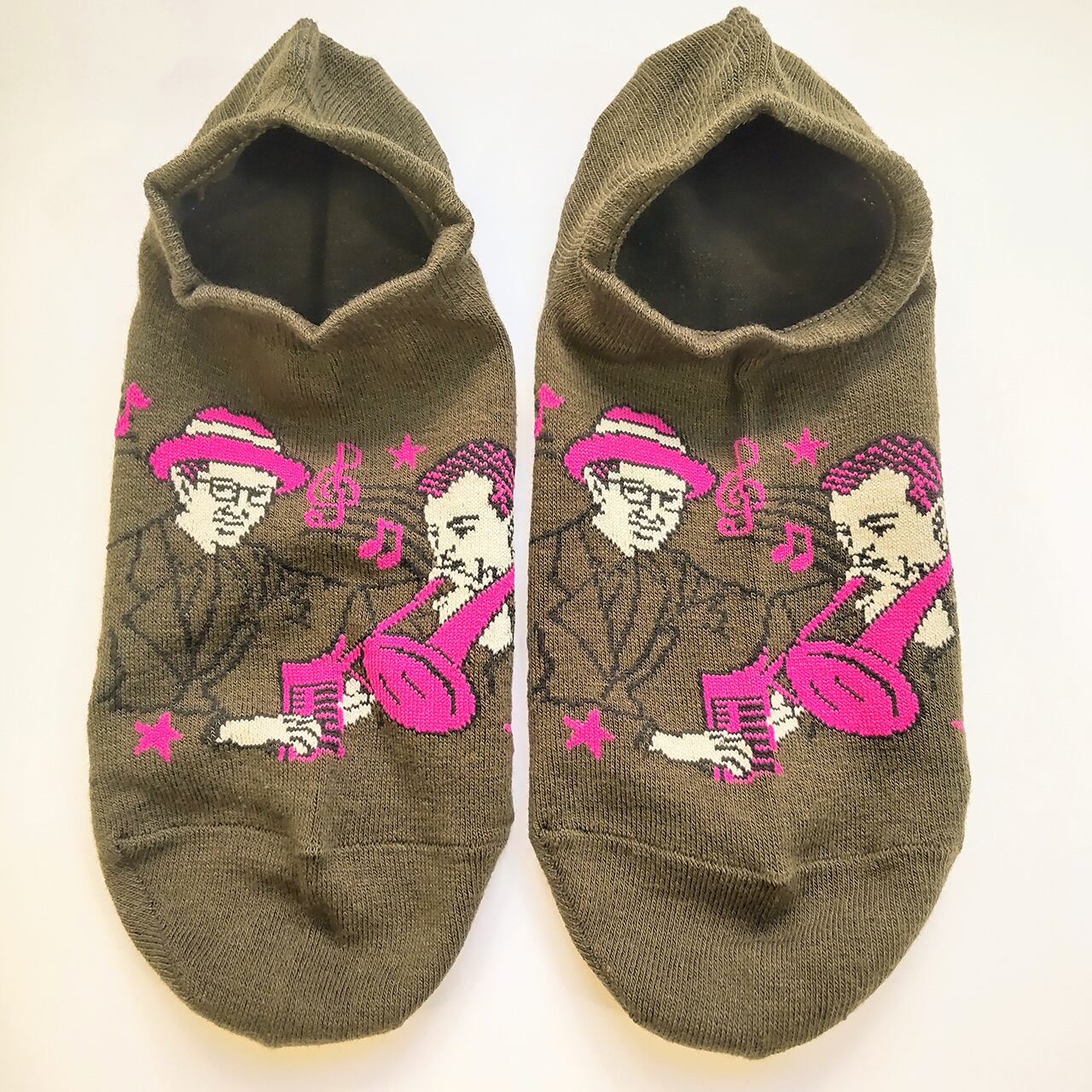 靴下一面にジャズを奏でている様子が描かれています。