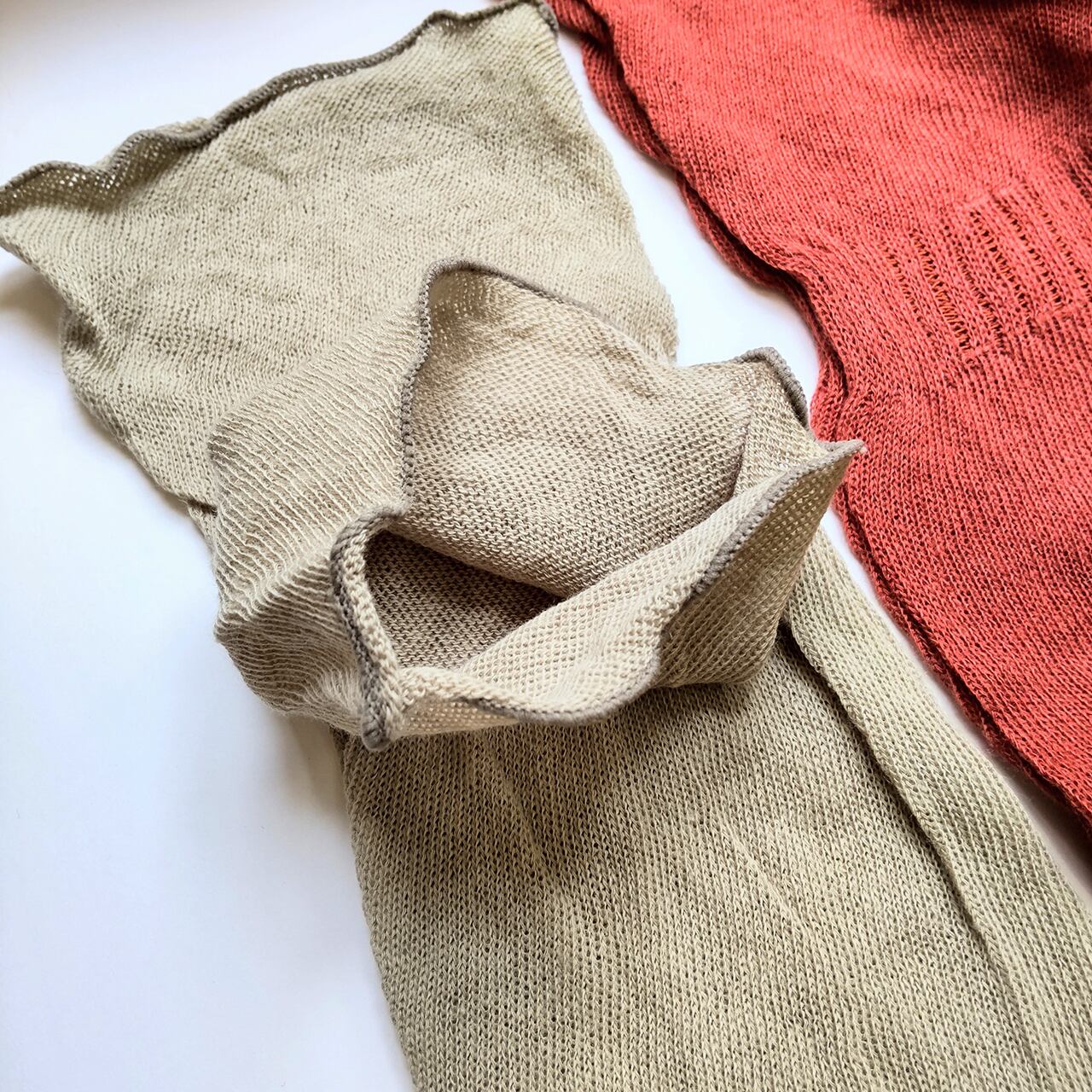 「コットンリネン ゆる編みアームカバー」