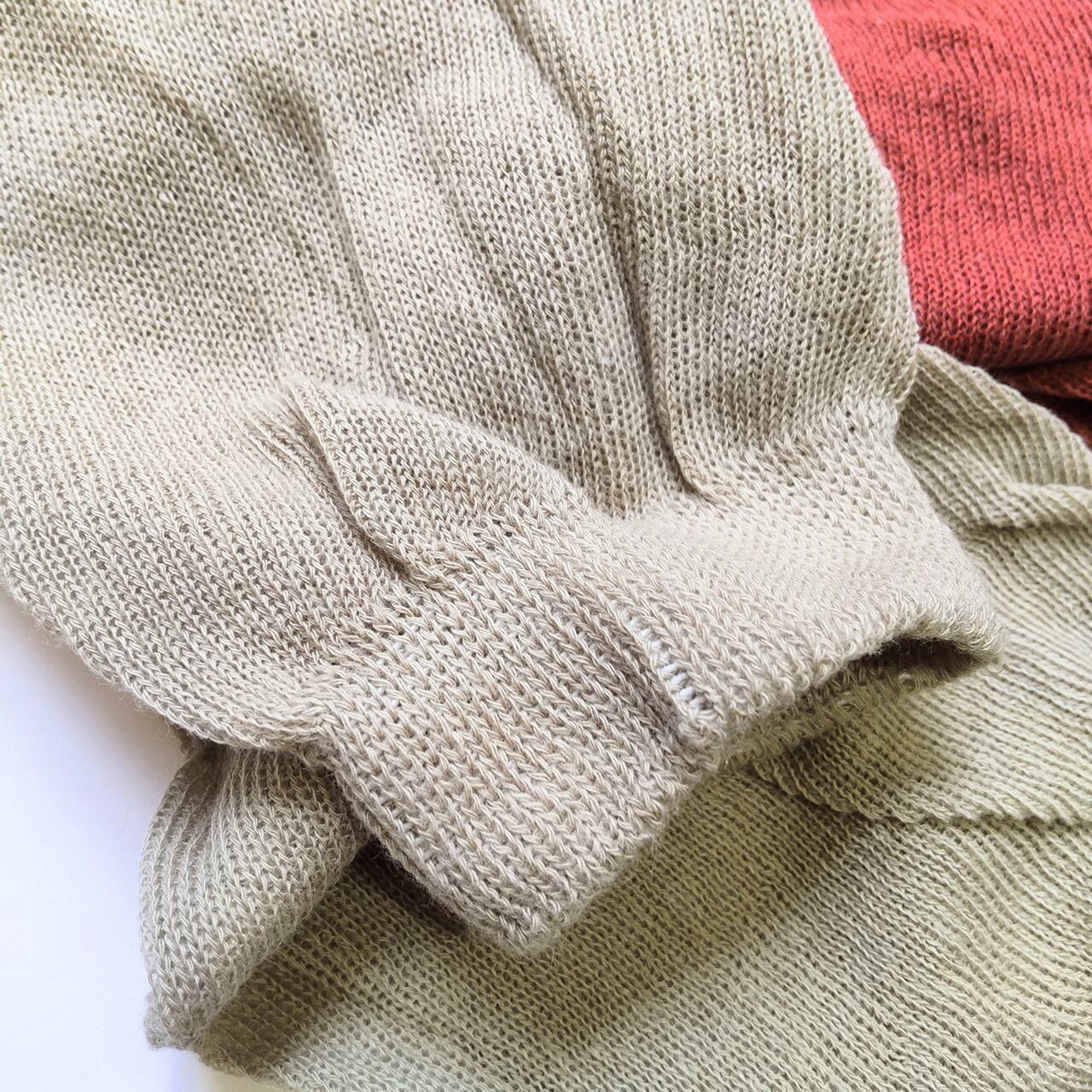 コットン70%、リネン30%の糸で、肌触りはさらりとしていて付け心地も気持ちいいです。