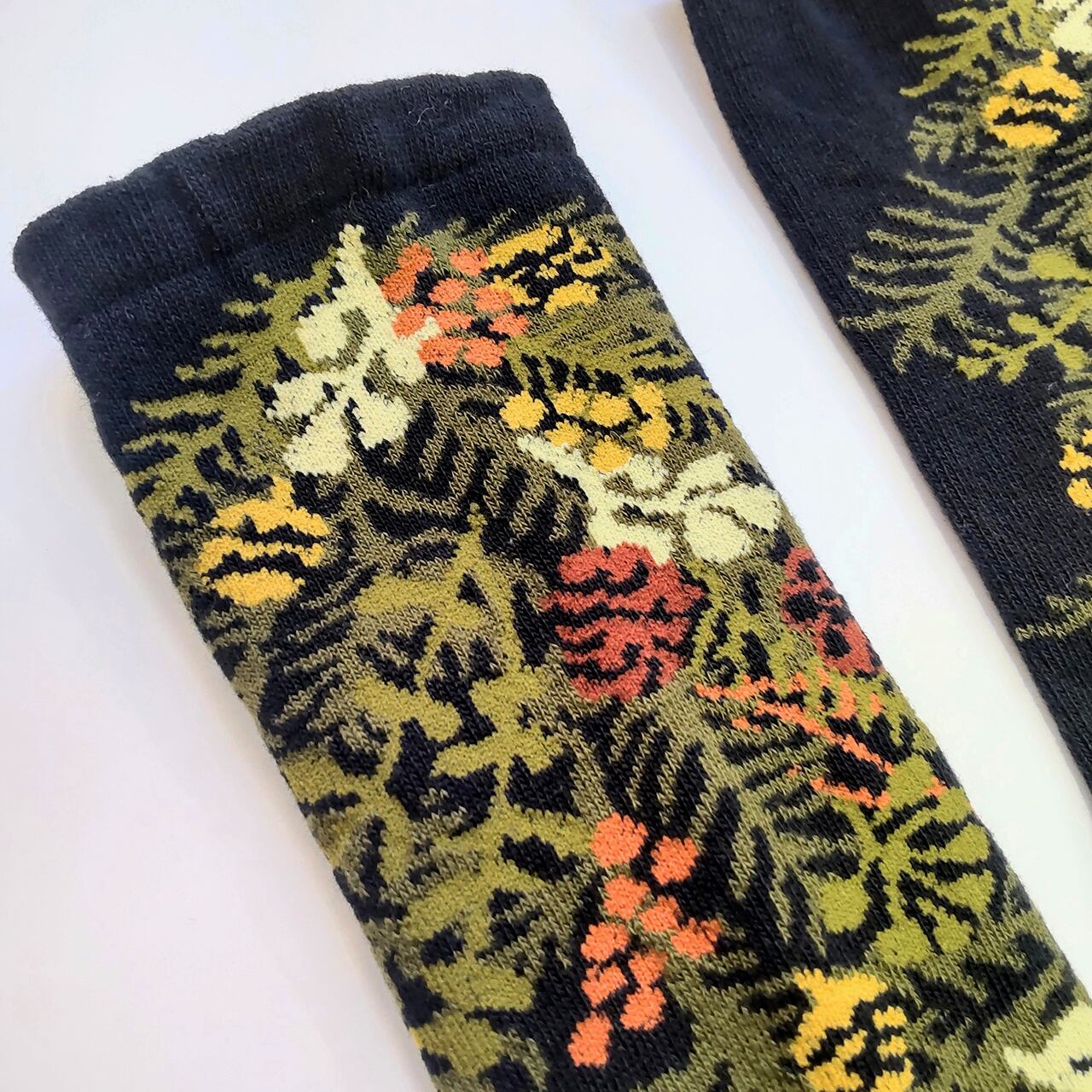 植物や花がいきいきと描かれ、日々の足元に彩りを添える「M&M socks」さんの靴下。