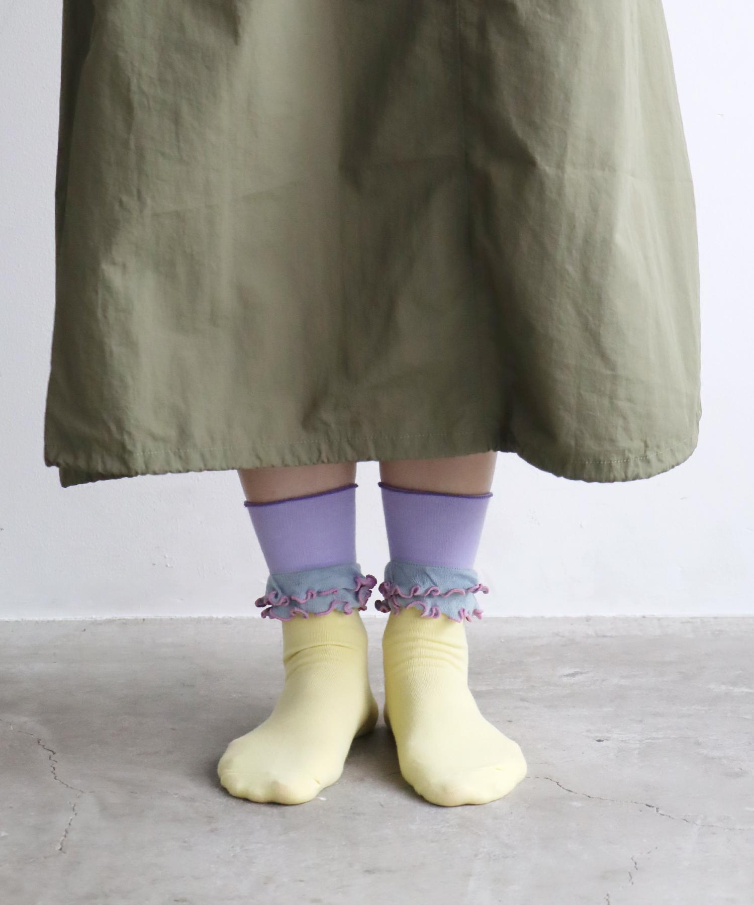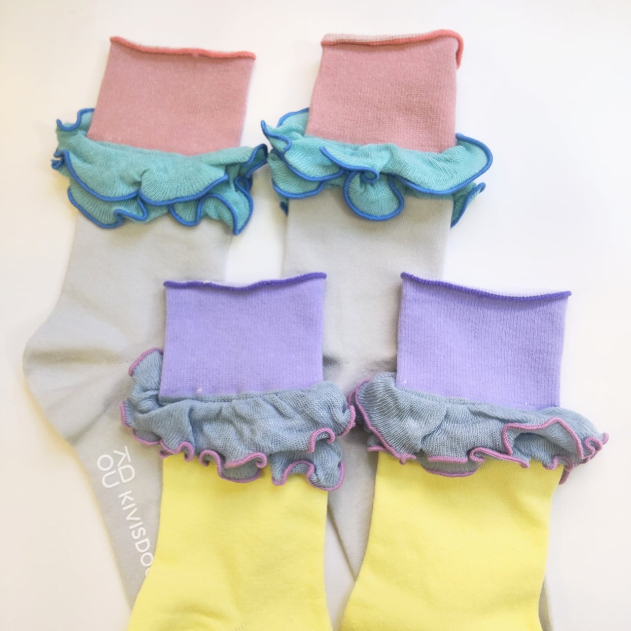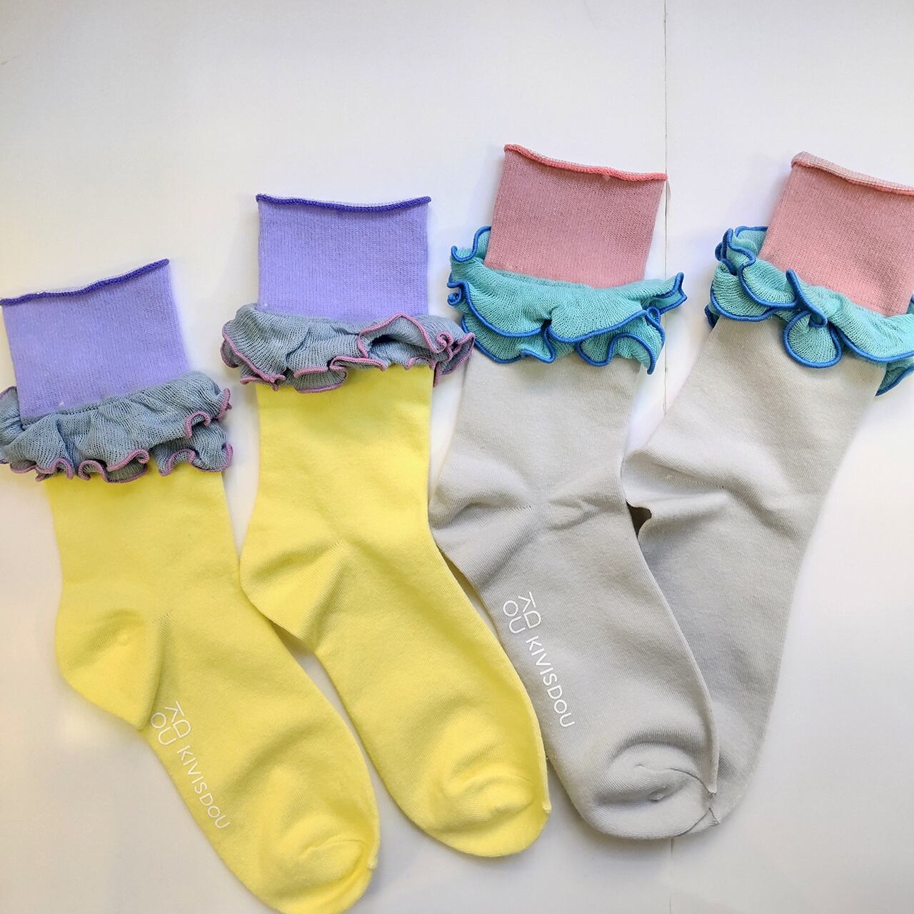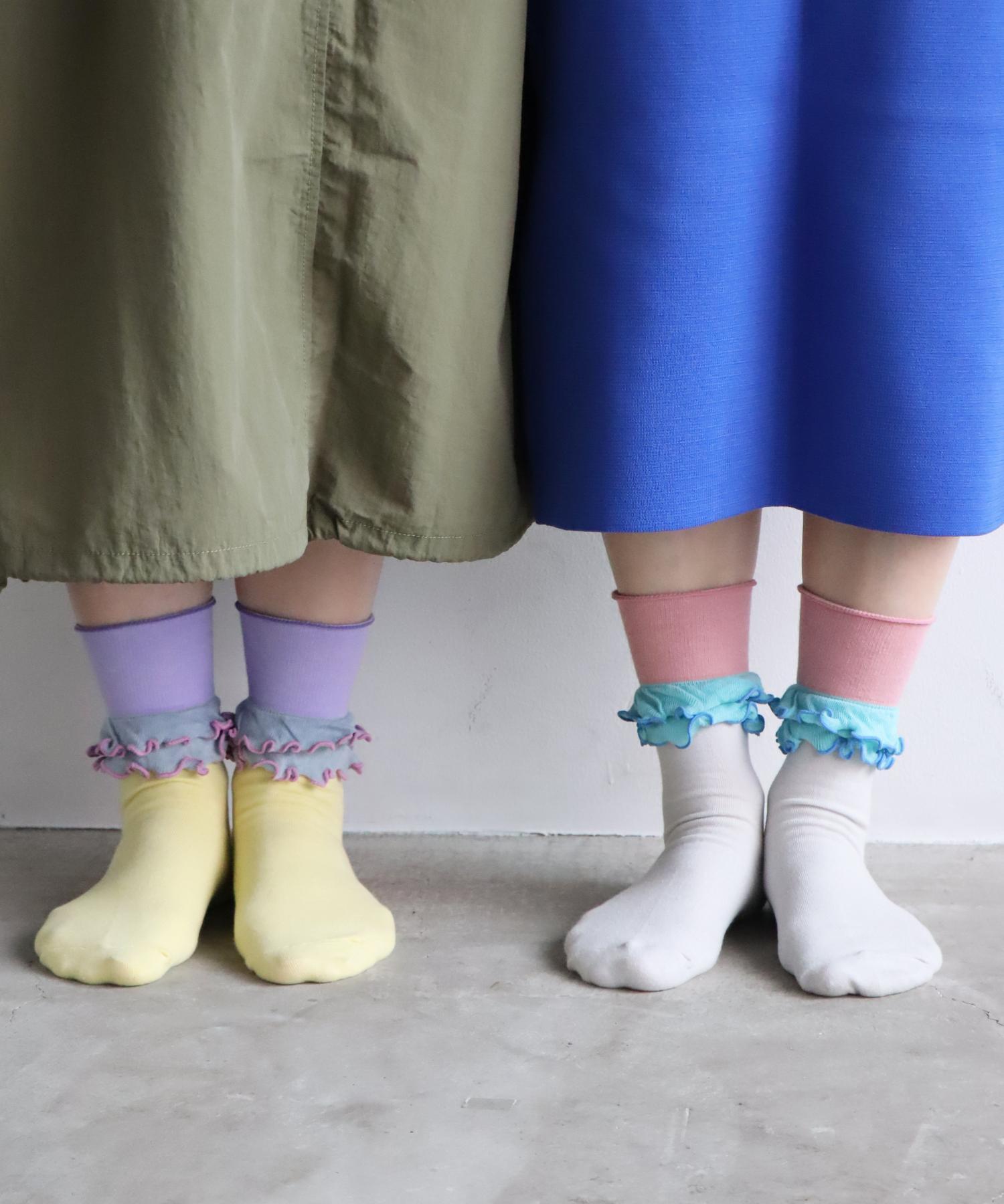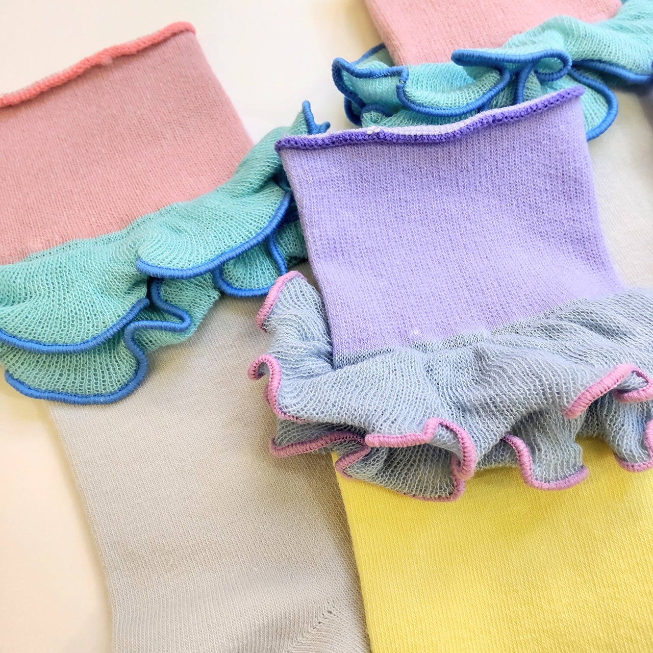 2重のフリルとパステルカラーの配色がとっても愛らしい靴下。