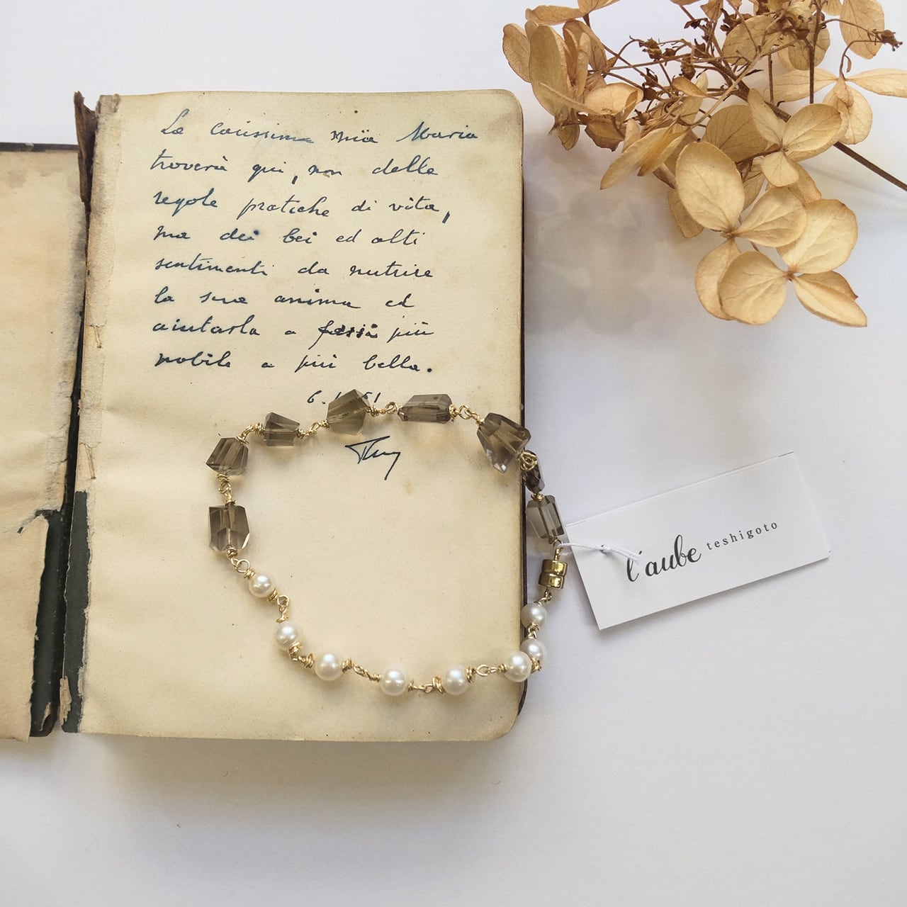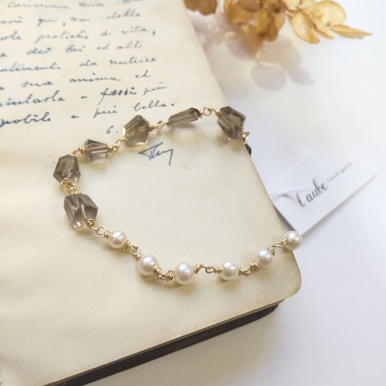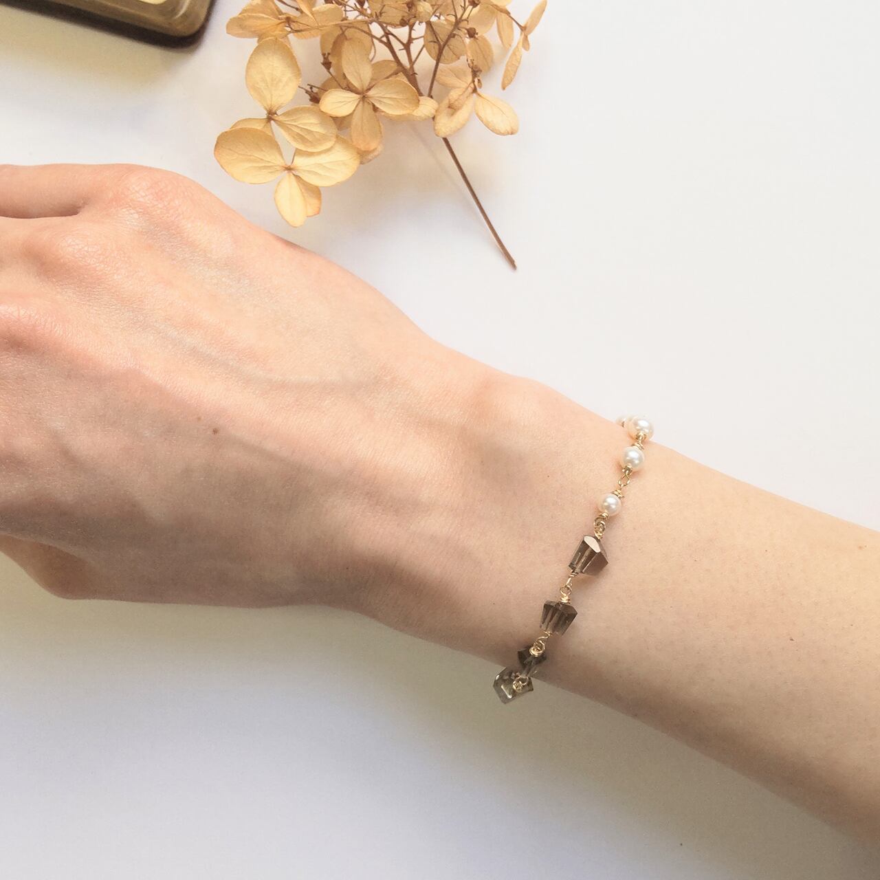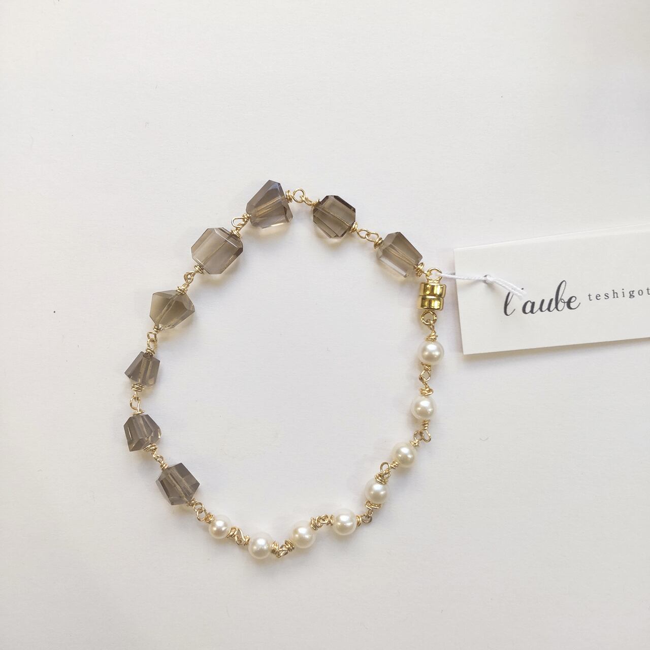 【l'aube】スモーキークオーツと淡水パールのブレスレット