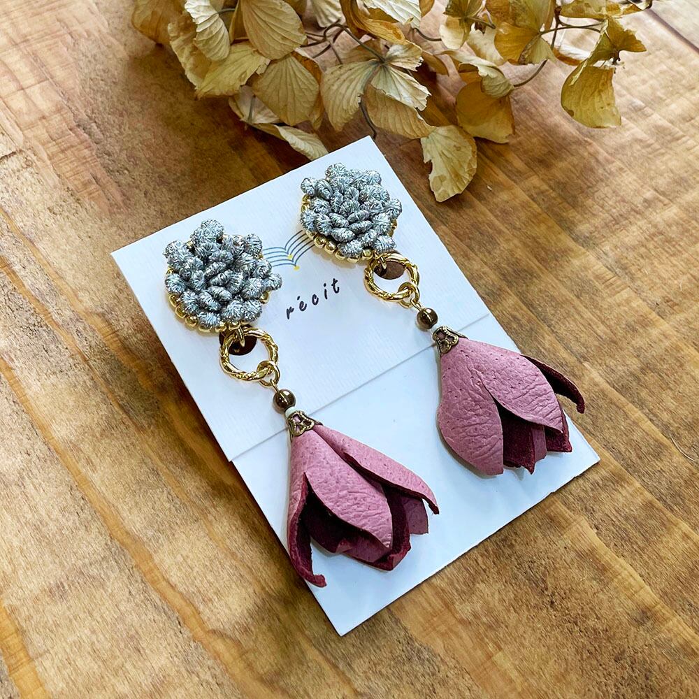 【recit】 キクノハナ イヤリング(スモーキーピンク)