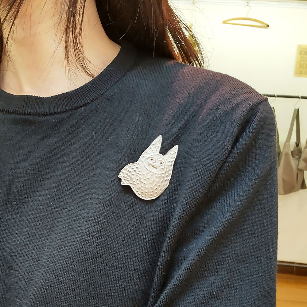 静岡の自然豊かな山里で作られる「AKI KASARA」さんの銀彩ブローチ。