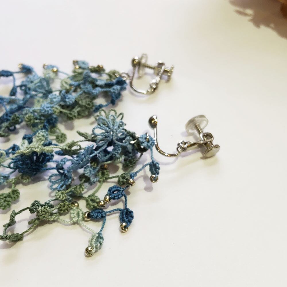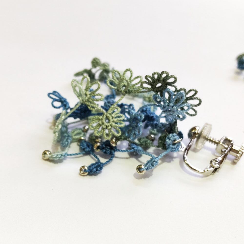 【la flanerie】 タティングレース スワッグモチーフ(ブルーリバー)・ピアス/イヤリング