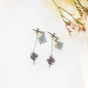 こちらは小さなお花のモチーフが、前後から可憐に揺れるピアスとイヤリング。