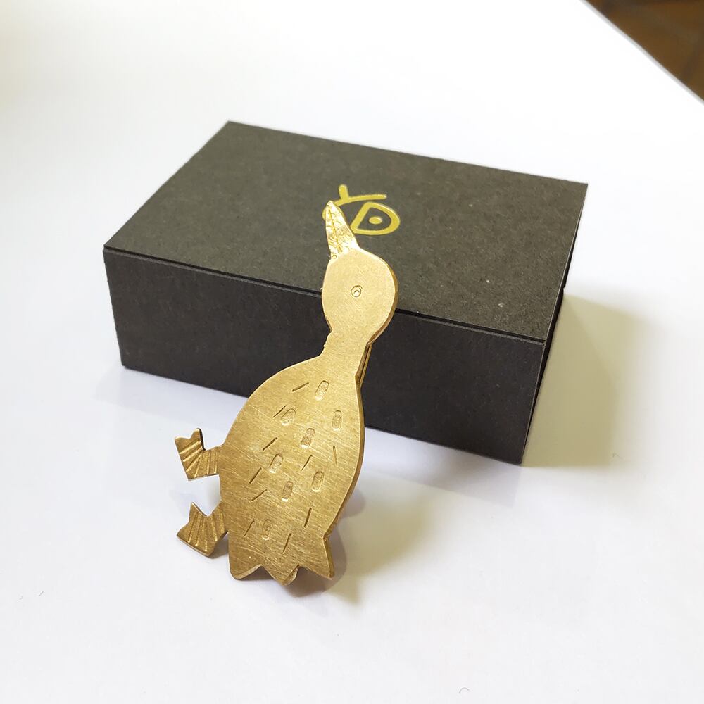 まるで絵本から飛び出したかのような「歩く鳥」さんの左向きブローチ。