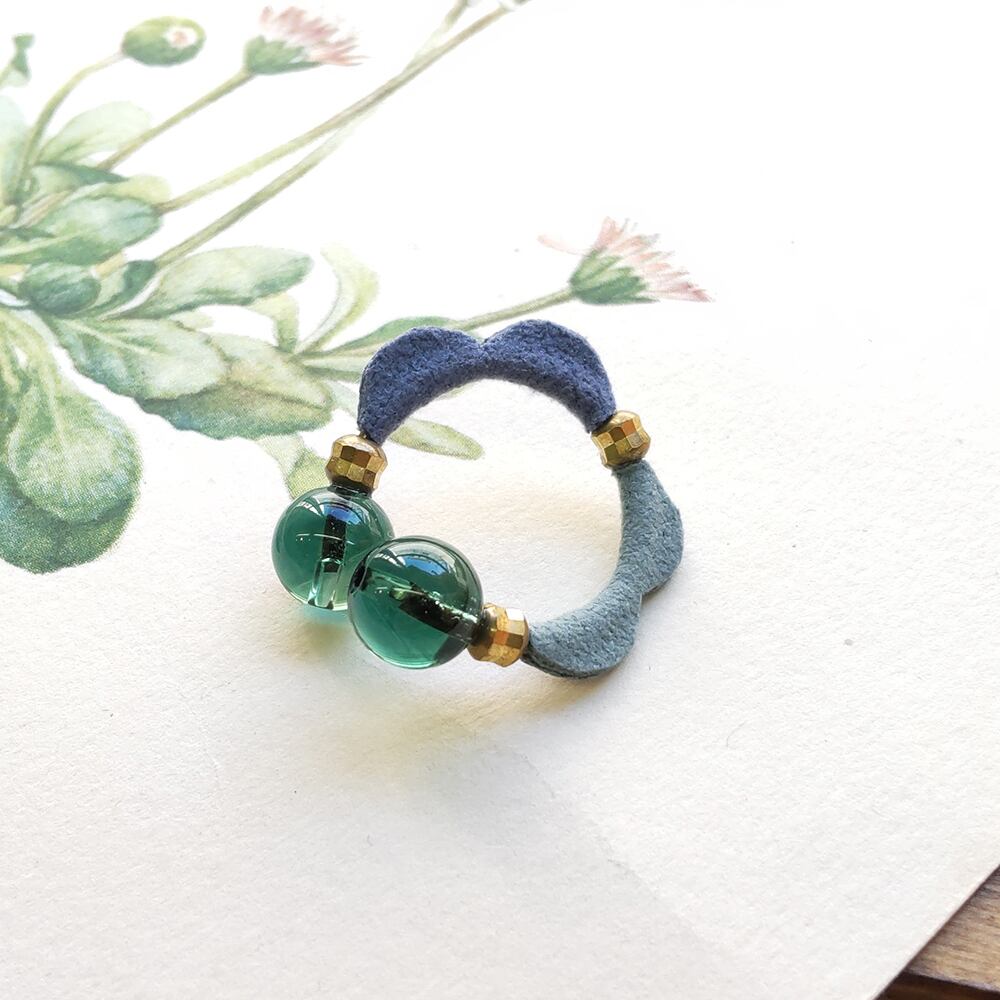 スエード調リボン・メタルパーツ・天然石(グリーン水晶)
