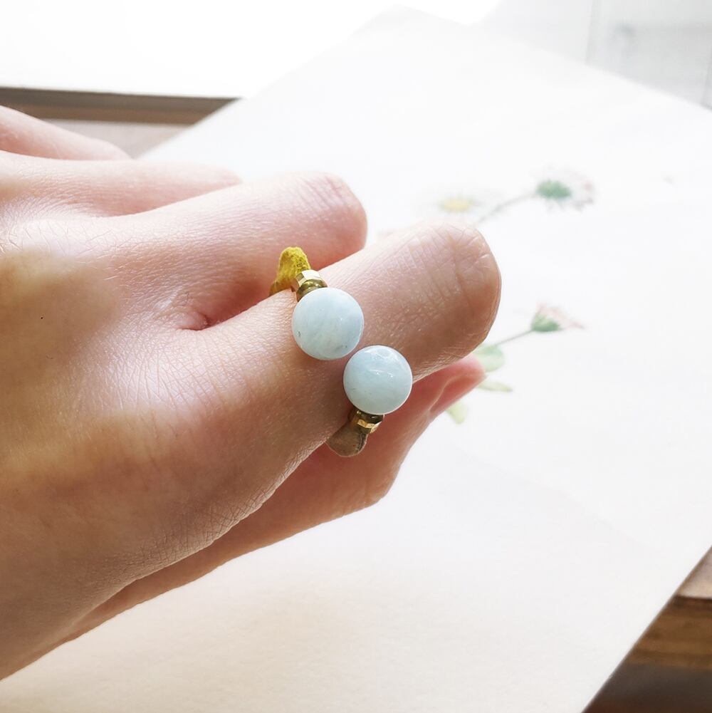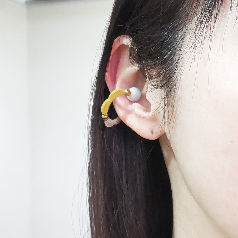 【recit】 hanatowaイヤーカフ グレージュイエロー(アクアマリン)