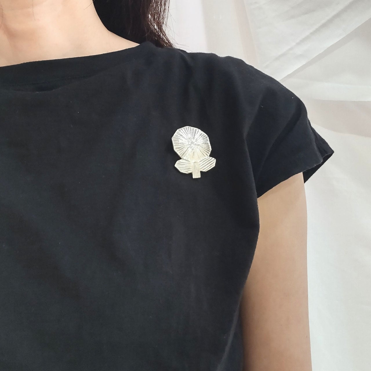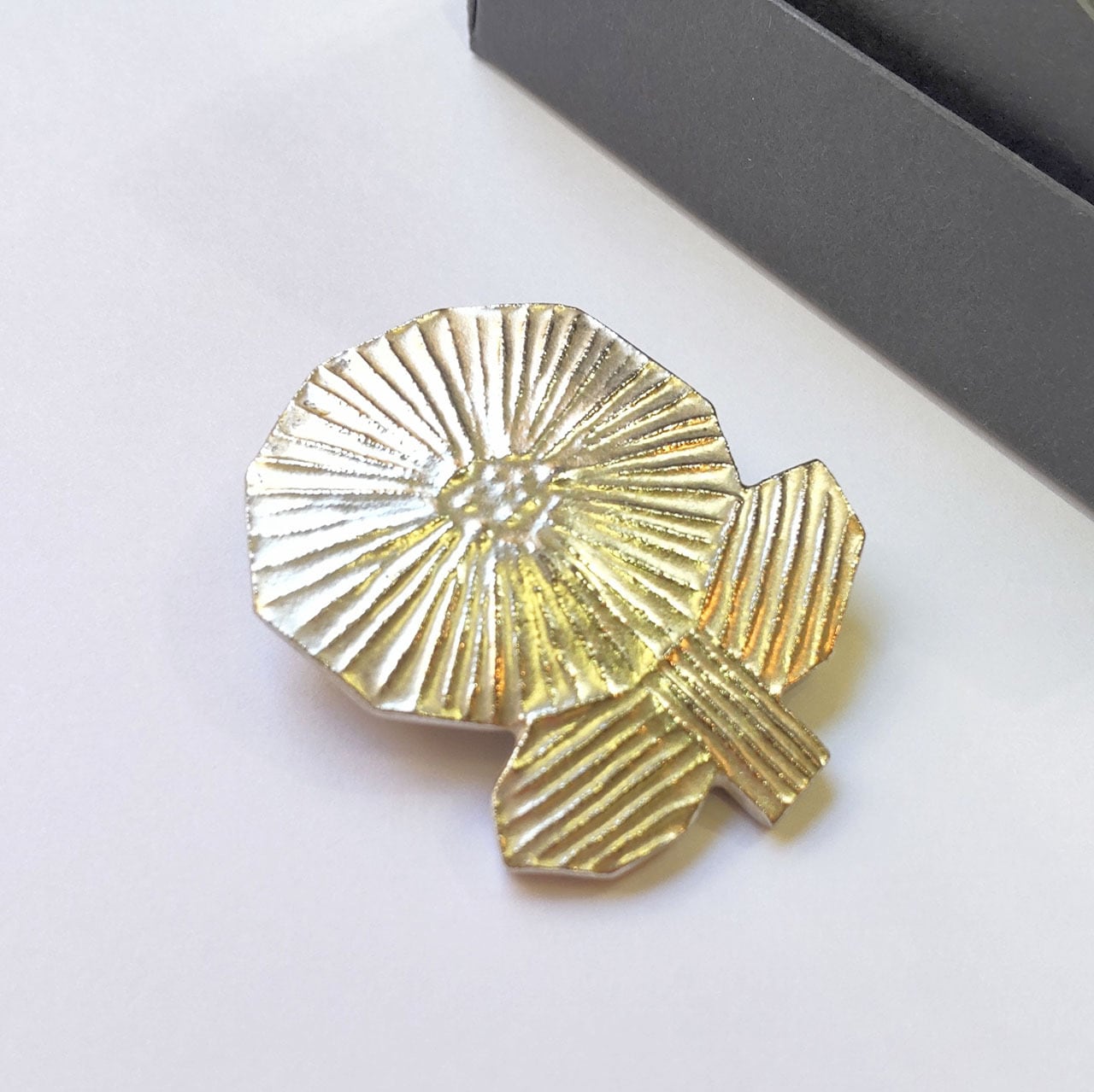 静岡の自然豊かな山里で作られる「AKI KASARA」さんの銀彩ブローチ。
