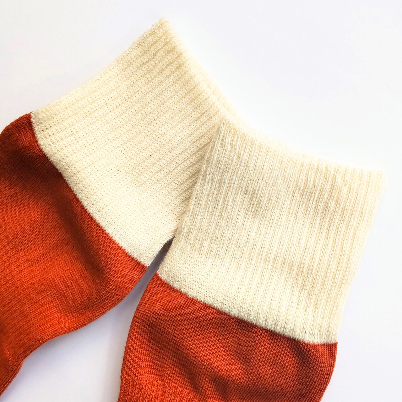 【How's That】足袋型シリーズ 生成×オレンジ(足底パイル足袋型ミドル丈ソックス22~24.5㎝)