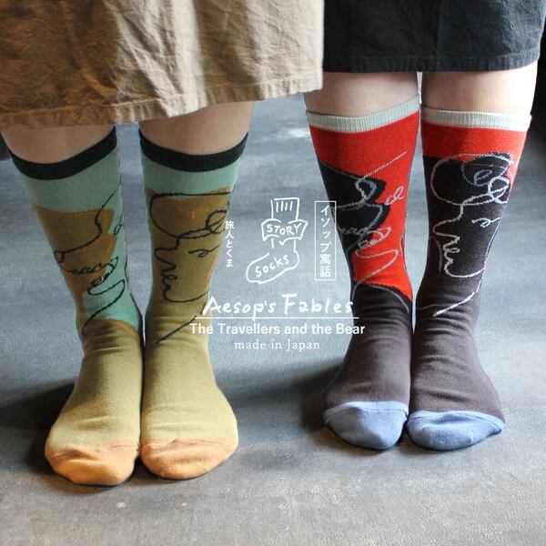 【M&M socks】STORY SOCKS 旅人とくま(イソップ寓話)
