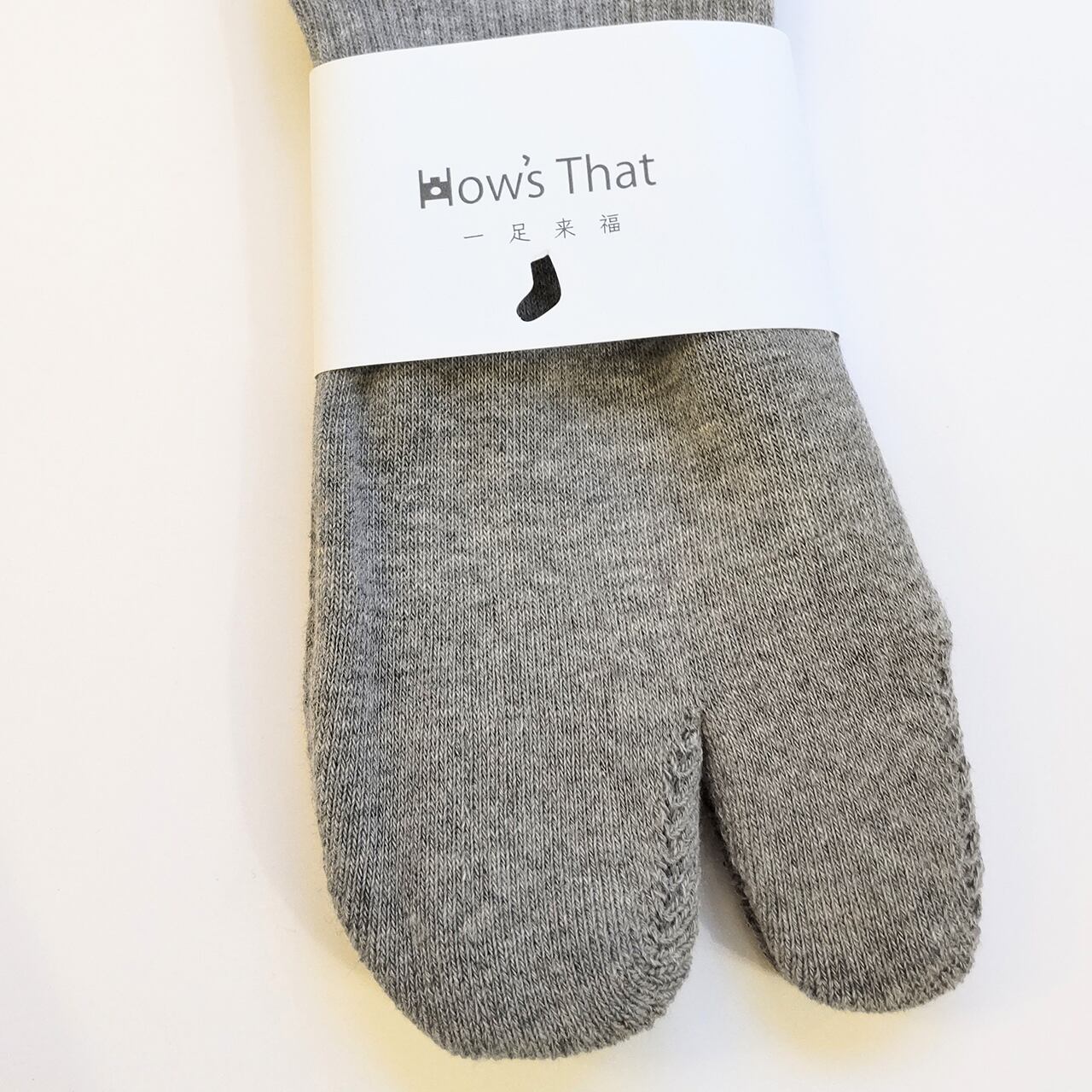 【How's That】足袋型シリーズ ピンク×グレー(足底パイル足袋型ミドル丈ソックス25~27.5㎝)