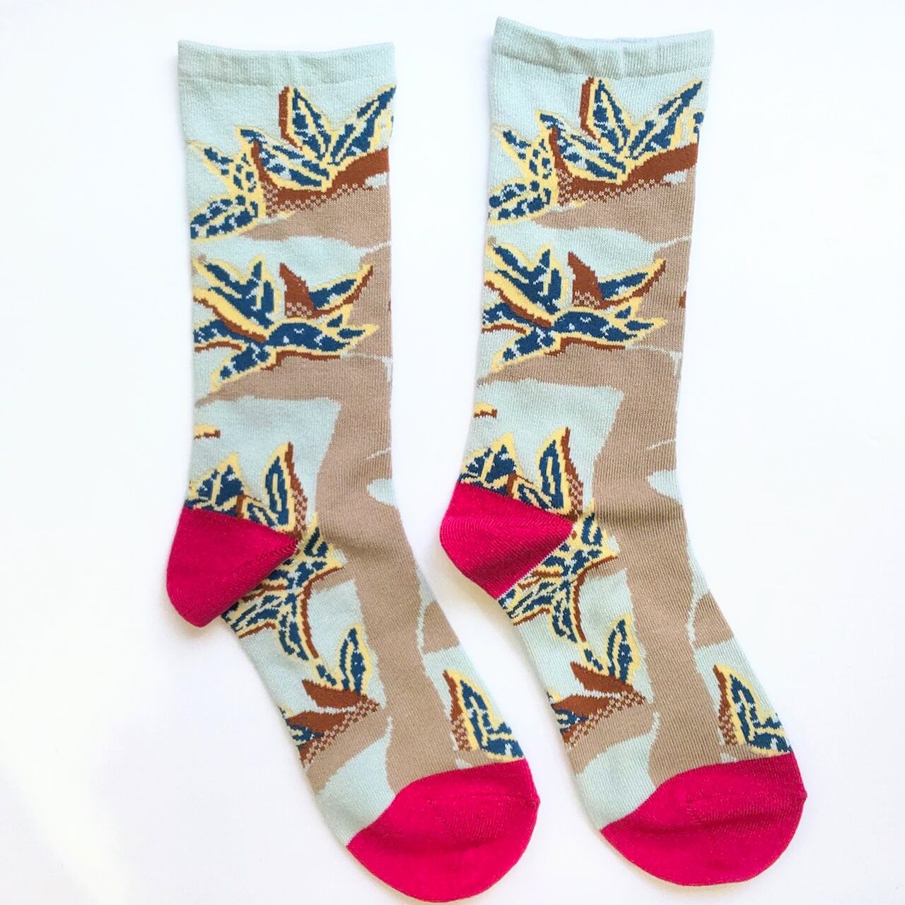植物や花がいきいきと描かれ、日々の足元に彩りを添える「M&M socks」さんの靴下。