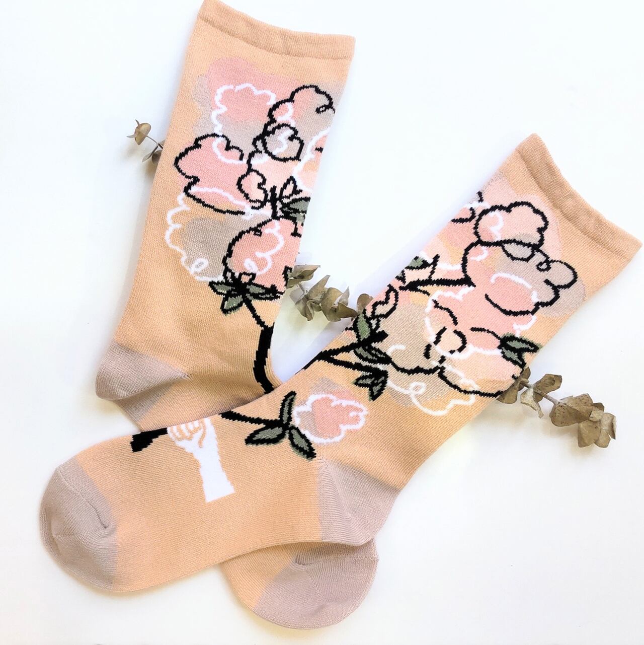 植物や花がいきいきと描かれ、日々の足元に彩りを添える「M&M socks」さんの靴下。