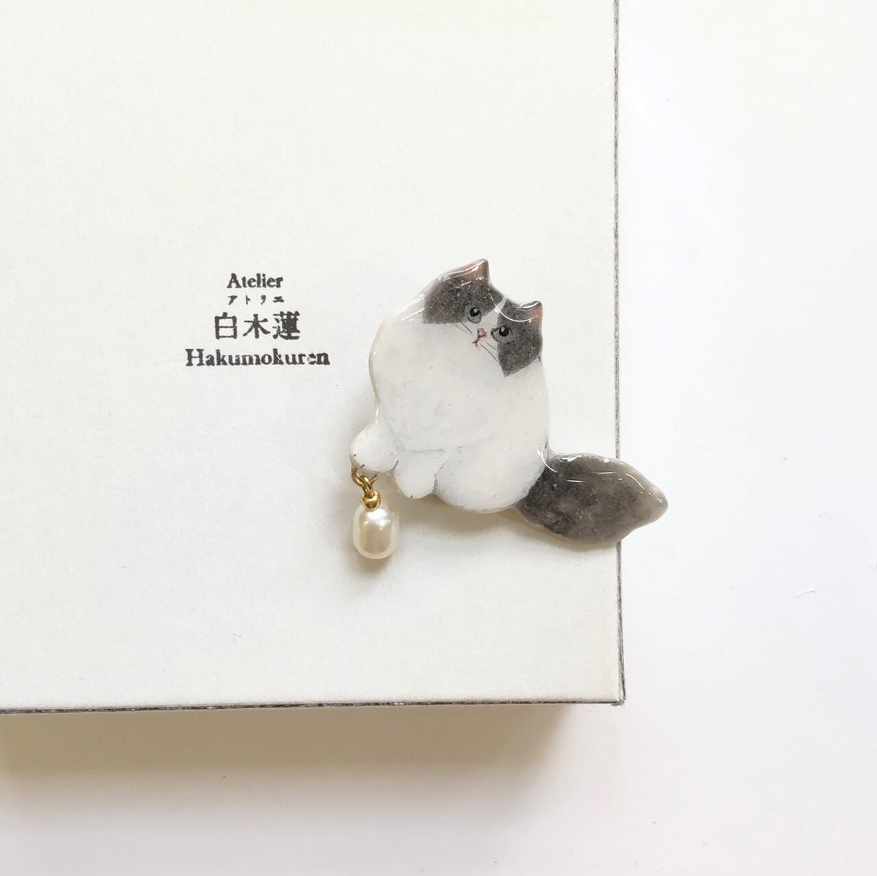 【Ateliet 白木蓮】 ふわふわ猫(ブローチ)
